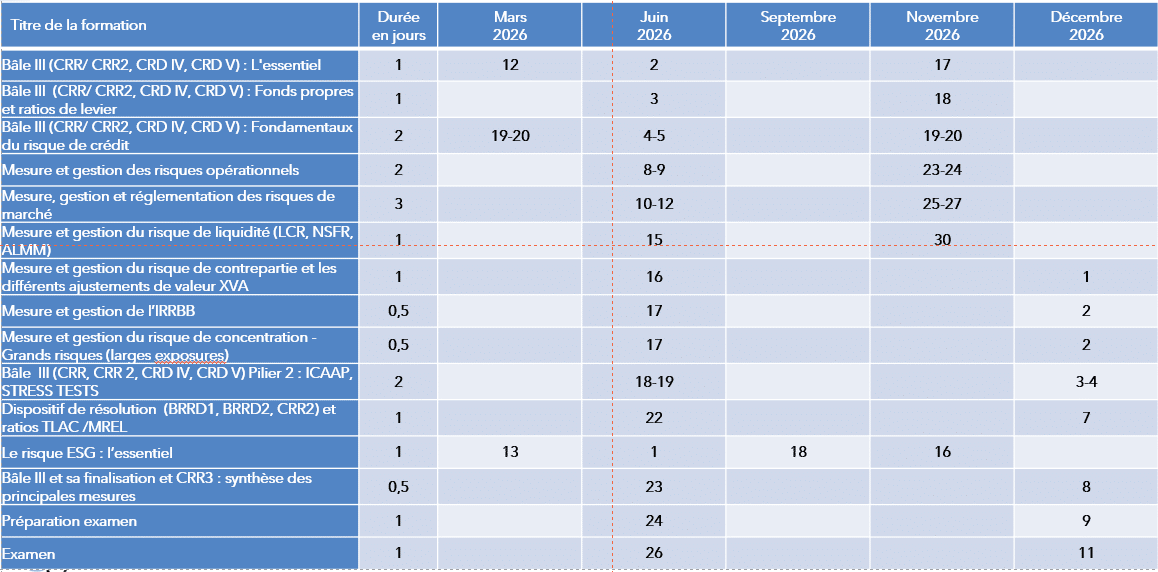 - Certifier la compétence en réglementation Bâle III des professionnels de toutes les fonctions bancaires impactées par la réglementation prudentielle.